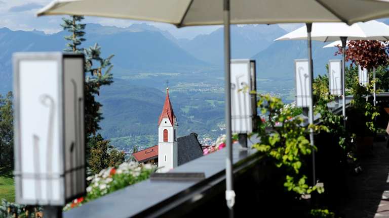 Das Restaurant im Hotel Alt Mösern bietet eine große Sonnenterrasse mit Panoramablick auf die Berge. Hier können Sie die traditionelle Küche genießen und sich von der malerischen Umgebung inspirieren lassen.