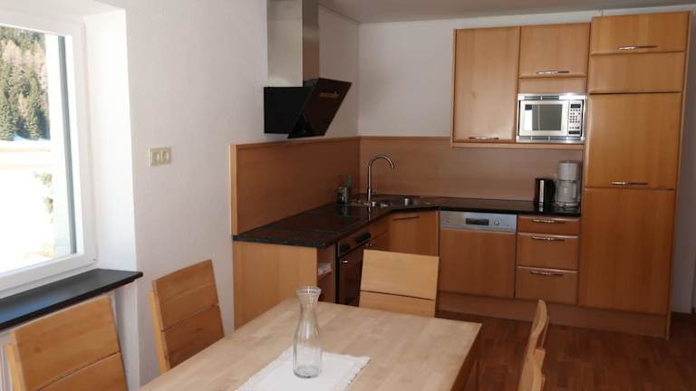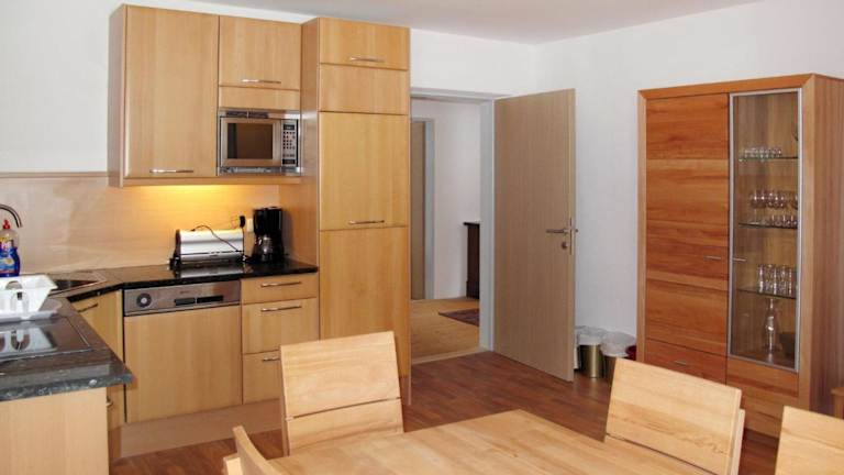 Die Ferienwohnung beinhaltet eine gut ausgestattete Küche mit Kühlschrank und Geschirrspüler sowie einen TV mit Satellitenkanälen.