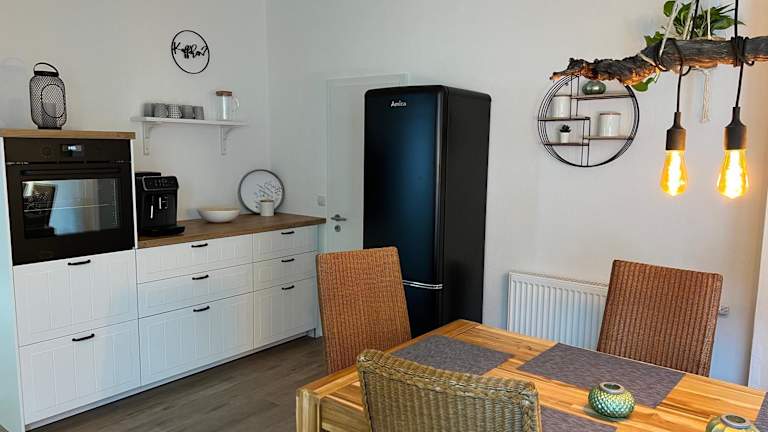 Das Apartment Altstadtflair verfügt über zwei gemütliche Schlafzimmer, ein geräumiges Wohnzimmer und eine voll ausgestattete Küche. Die Küche ist mit einem Kühlschrank und einer Kaffeemaschine ausgestattet, sodass die Gäste ihre eigenen Mahlzeiten zubereiten können. Das Apartment bietet auch ein Badezimmer mit einer Badewanne oder einer Dusche und einem Haartrockner. Handtücher und Bettwäsche werden gestellt, um den Aufenthalt so angenehm wie möglich zu gestalten.