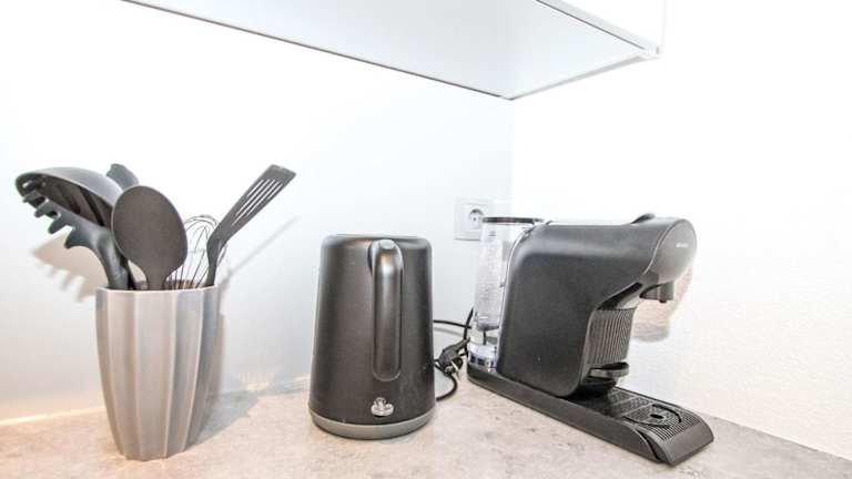 Das Apartment verfügt über einen Kabel TV und eine voll ausgestattete Küche mit Kühlschrank, Ofen, Herdplatte und Kaffeemaschine.