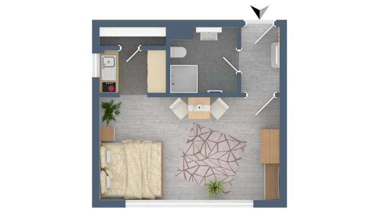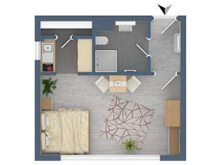 Die Ferienwohnung verfügt über ein Schlafzimmer, einen Flachbild-TV mit Satellitenkanälen sowie eine gut ausgestattete Küche mit Kühlschrank und Herdplatte. Es gibt außerdem ein Badezimmer mit Dusche. Handtücher und Bettwäsche werden bereitgestellt.