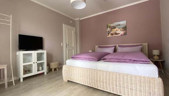 Die Ferienwohnung umfasst ein Schlafzimmer und ein Badezimmer, das mit einer Dusche, einer Badewanne und einem Haartrockner ausgestattet ist. Die Wohnung verfügt über Parkettböden und bietet Handtücher sowie Bettwäsche für die Gäste.