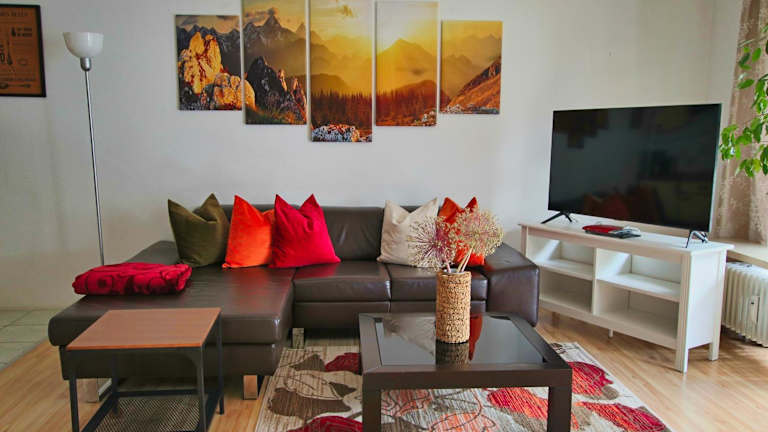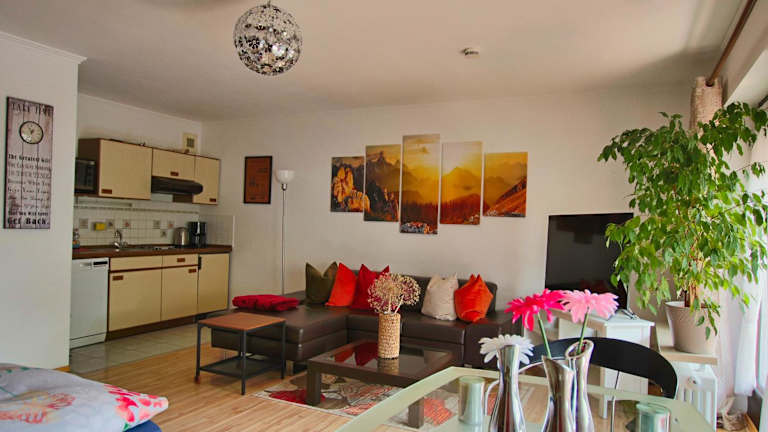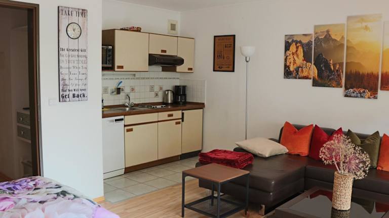 Die Ferienwohnung umfasst ein Schlafzimmer und ein Wohnzimmer. Zur Ausstattung gehören ein Flachbild-TV und eine gut ausgestattete Küche mit Kühlschrank und Geschirrspüler. Zudem gibt es ein Badezimmer mit Dusche. Handtücher und Bettwäsche werden bereitgestellt.
