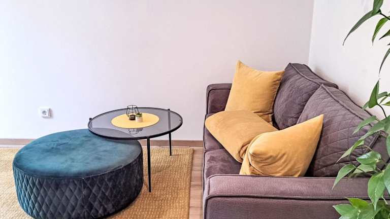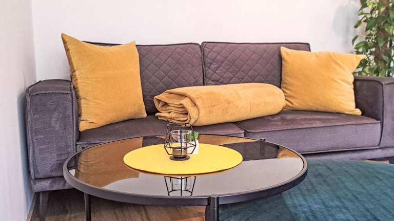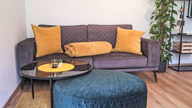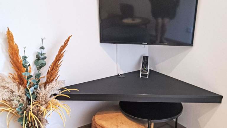 Die Ferienwohnung umfasst ein Schlafzimmer, einen TV mit Kabelkanälen sowie eine gut ausgestattete Küche, die einen Kühlschrank und einen Geschirrspüler beinhaltet. Des Weiteren verfügt die Wohnung über ein Badezimmer mit Dusche.