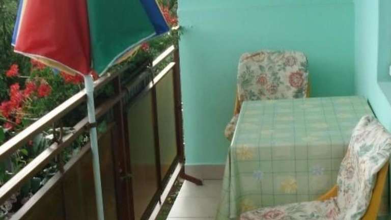 Die Ferienwohnung verfügt über eine Küchenzeile und einen Balkon. Es gibt keine Informationen zu weiteren spezifischen Zimmereinrichtungen.