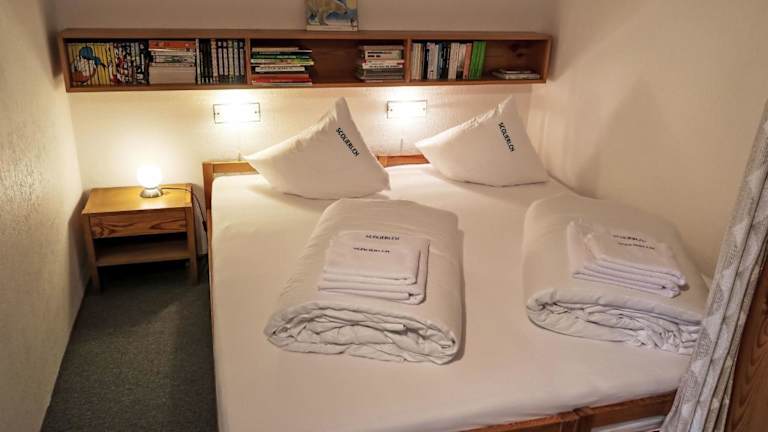 Das Apartment besteht aus zwei Schlafzimmern und einer gut ausgestatteten Küche, die über einen Kühlschrank, Geschirrspüler sowie eine Kaffeemaschine verfügt. Des Weiteren gibt es ein Badezimmer mit Dusche und einen TV mit Satellitenkanälen. Zu beachten ist, dass einige Schlafbereiche in einem offenen Raum angeordnet sind.