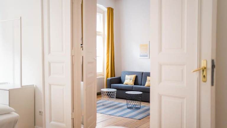 Das Apartment at Rosenthaler Platz ist eine Ferienwohnung, die mit einem Wohnzimmer, einem Schlafzimmer sowie einer voll ausgestatteten Küche ausgestattet ist. Es wird kostenloses WLAN angeboten. Die Unterkunft ist eine Nichtraucherunterkunft.