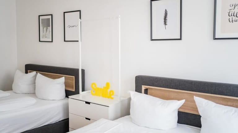 Das Apartment verfügt über ein Schlafzimmer, ein Wohnzimmer mit TV, eine voll ausgestattete Küche mit Kühlschrank und Geschirrspüler sowie ein Badezimmer mit Haartrockner. Handtücher und Bettwäsche werden bereitgestellt. Der Check-in erfolgt digital.
