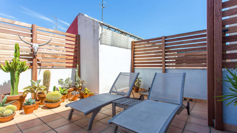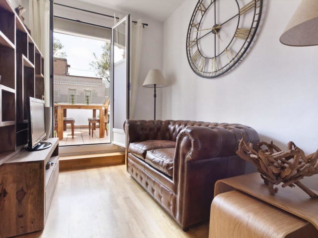 Unseres zentral gelegen Appartement verfügt über zwei "grüne" Terrassen, ein Essbereich und ein Sonnendach, und ist gelegen bei sagrada Familia und Sant Pau. es bietet Zwei Personen alle Comfort mit voll eingerichtete Küche, Bade,- Wohn und Schlafzimmer. Auf 500 Meter befinden sich zwei Metrostationen, die Ihnen in 15 Minuten zu alle Sehenwürdigkeiten, Ramblas und Strände bringen. Geschäfte und Restaurants gibt es um die Ecke, trotzdem ist die Lage ruhig; geniessen Sie die wunderbare Stad Barcelona!