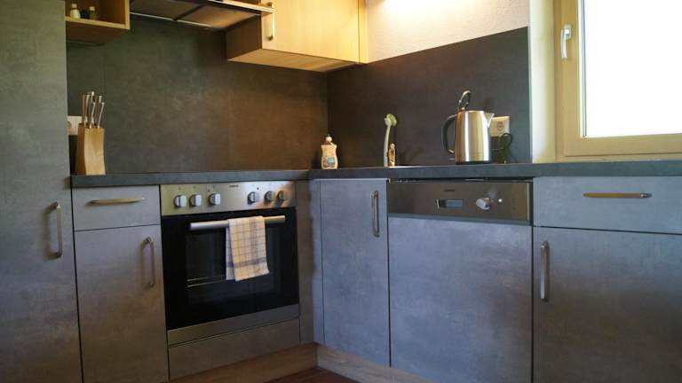 Die Ferienwohnung verfügt über ein Schlafzimmer, ein Wohnzimmer, einen Flachbild-TV und eine gut ausgestattete Küche mit Kühlschrank und Geschirrspüler. Ein Badezimmer mit Dusche ist ebenfalls vorhanden. Handtücher und Bettwäsche werden bereitgestellt, und die Unterkunft umfasst eine Terrasse mit Bergblick.