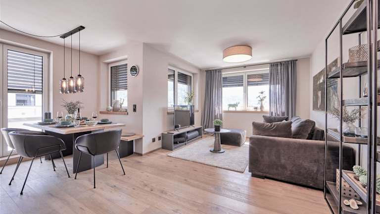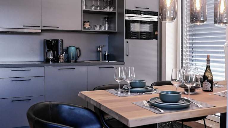 Die Ferienwohnung besteht aus zwei Schlafzimmern, einem Wohnzimmer und einer voll ausgestatteten Küche, die einen Kühlschrank und eine Kaffeemaschine enthält. Ein Badezimmer mit Dusche und Haartrockner ist ebenfalls vorhanden. Handtücher und Bettwäsche werden zur Verfügung gestellt.