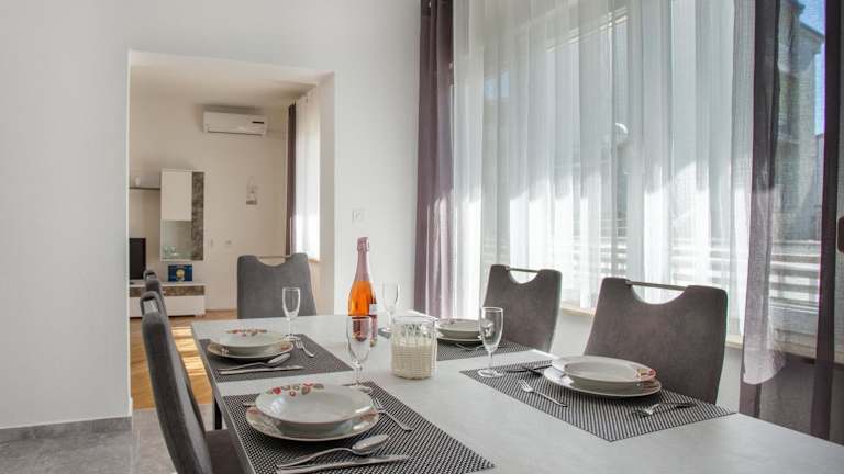 Das klimatisierte Apartment Blaž verfügt über 3 Schlafzimmer, ein Wohnzimmer, eine voll ausgestattete Küche mit Kühlschrank und Kaffeemaschine sowie ein Badezimmer mit Bidet und Dusche. Handtücher und Bettwäsche werden im Apartment gestellt, sodass Sie sich um nichts kümmern müssen. Genießen Sie den Komfort und die Privatsphäre eines eigenen Apartments während Ihres Aufenthalts.