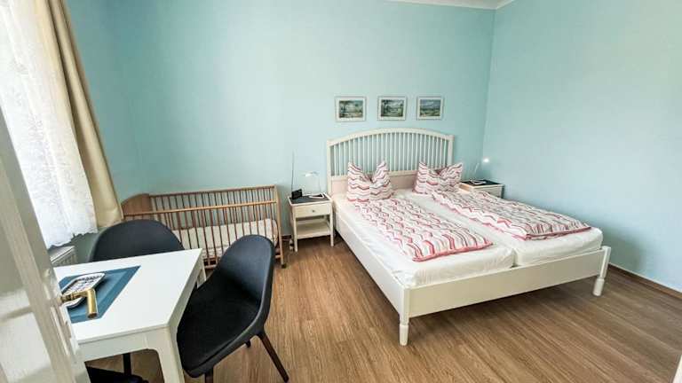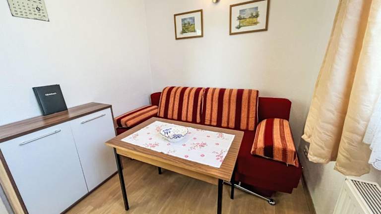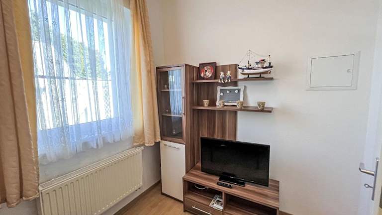 Die Ferienwohnung umfasst 1 Schlafzimmer und verfügt über eine gut ausgestattete Küchenzeile. Zur Ausstattung gehört ein Badezimmer mit Dusche sowie ein TV mit Kabelkanälen. Gegen Gebühr kann ein Babybett bereitgestellt werden.