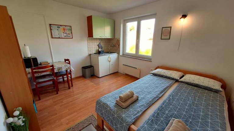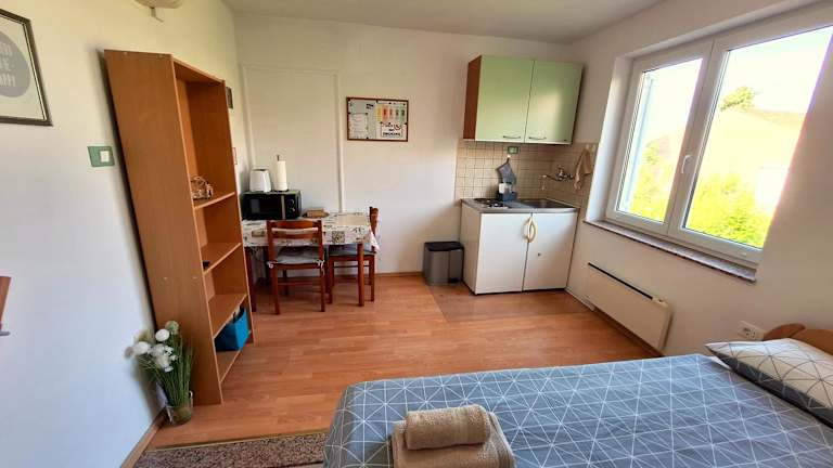 Die Ferienwohnung verfügt über ein Schlafzimmer und ist mit einem Flachbild-TV mit Satellitenkanälen, einer gut ausgestatteten Küche (mit Kühlschrank und Herdplatte) sowie einem Badezimmer mit Dusche ausgestattet. Handtücher und Bettwäsche werden bereitgestellt.