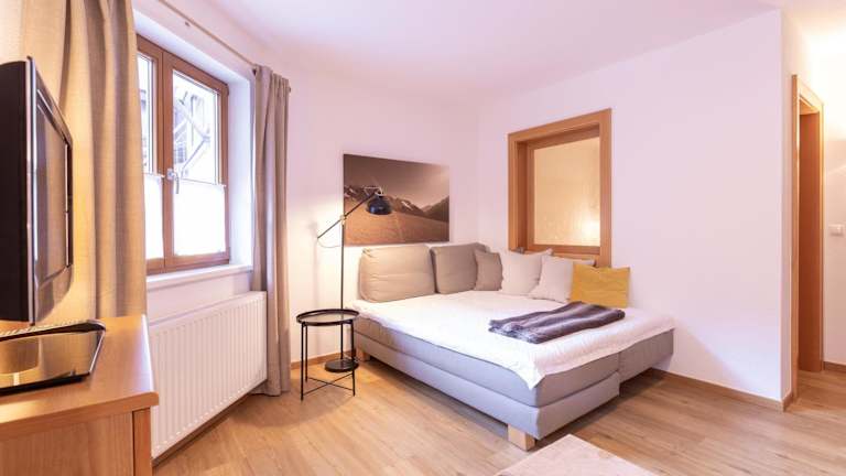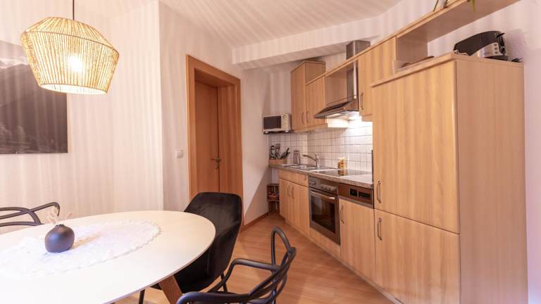 Die Ferienwohnung umfasst ein Schlafzimmer, ein Wohnzimmer und ist mit einem Flachbild-TV sowie einer gut ausgestatteten Küche mit Kühlschrank und Geschirrspüler versehen. Es gibt zudem ein Badezimmer mit Dusche. Handtücher und Bettwäsche werden bereitgestellt.