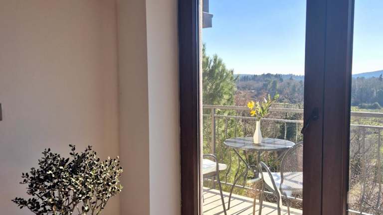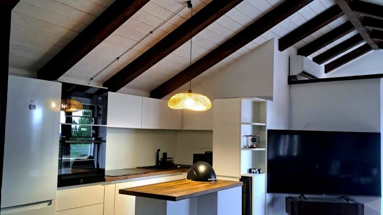 Die Ferienwohnung ist klimatisiert und umfasst 2 Schlafzimmer, ein Wohnzimmer, eine voll ausgestattete Küche mit Kühlschrank und Kaffeemaschine sowie ein Badezimmer mit Dusche. Handtücher und Bettwäsche werden bereitgestellt.