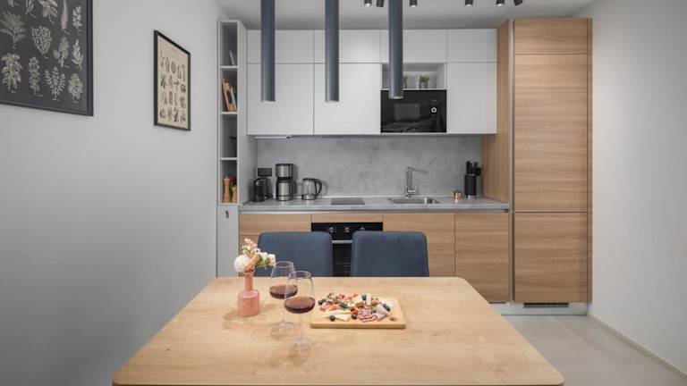 Die Ferienwohnung verfügt über ein Schlafzimmer, ein Wohnzimmer und eine voll ausgestattete Küche mit Kühlschrank und Kaffeemaschine. Es gibt ein Badezimmer mit Dusche und kostenlosen Pflegeprodukten. Handtücher und Bettwäsche werden bereitgestellt.