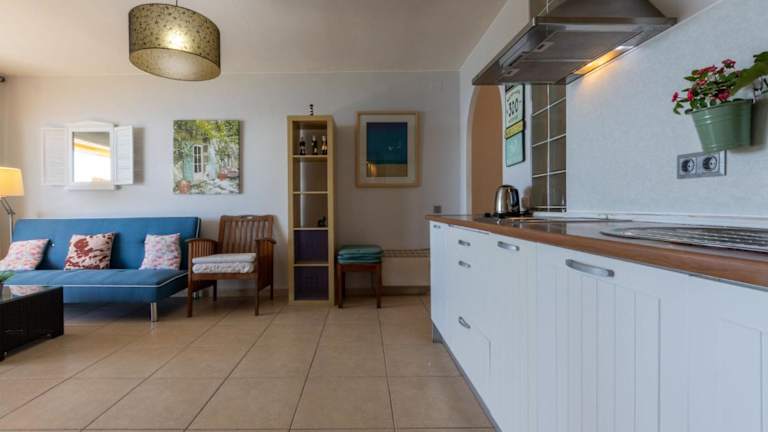 Die Wohnung umfasst ein Schlafzimmer, ein Wohnzimmer und eine voll ausgestattete Küche mit Kühlschrank und Kaffeemaschine. Das Badezimmer ist mit einer Badewanne und einem Haartrockner ausgestattet. Zur Ausstattung gehört auch ein Fernseher. Die Unterkunft bietet Klimaanlage und Bettwäsche.