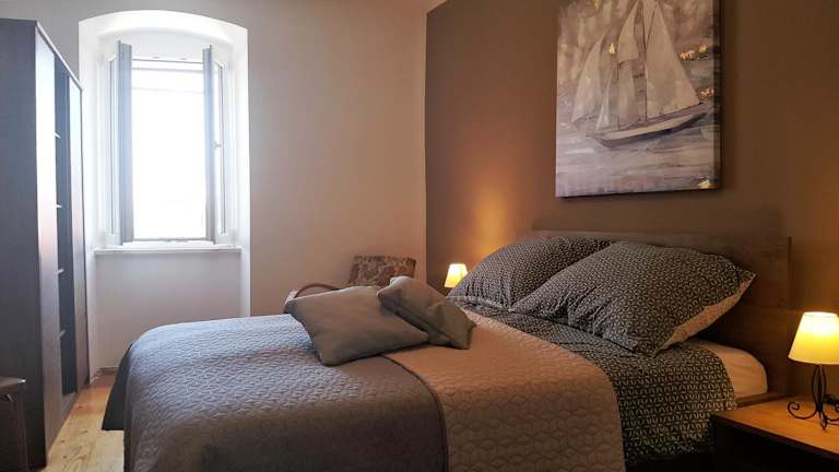 Die Ferienwohnung umfasst zwei Schlafzimmer, ein Wohnzimmer und eine voll ausgestattete Küche mit Kühlschrank und Kaffeemaschine. Das Badezimmer ist mit einer Dusche ausgestattet, und alle Zimmer sind klimatisiert. Ein Flachbild-TV ist ebenfalls vorhanden.