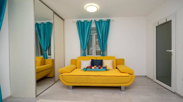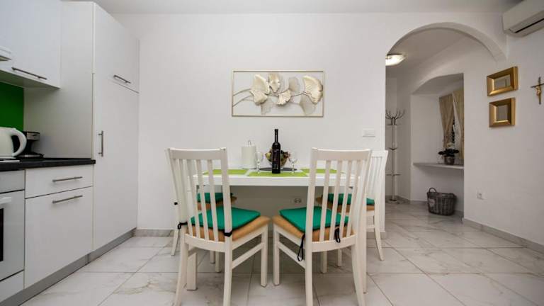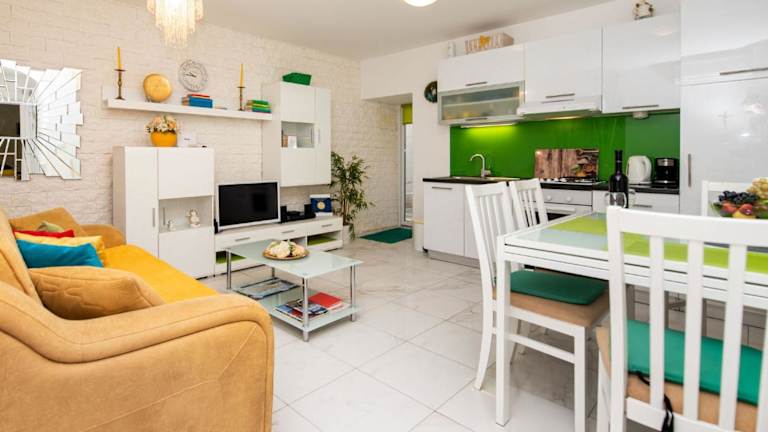 Das Apartment Dea wurde im Jahr 2012 renoviert und bietet eine helle und stilvolle Einrichtung. Die modernen Möbel und die geschmackvolle Dekoration schaffen eine angenehme Atmosphäre. Das klimatisierte Apartment verfügt über einen Balkon, auf dem Sie die warmen Abende genießen können. Im geräumigen Wohnzimmer finden Sie ein LCD-Kabel-TV und ein bequemes Schlafsofa. Die voll ausgestattete Küche ermöglicht es Ihnen, Ihre eigenen Mahlzeiten zuzubereiten. Das Badezimmer ist mit einer Dusche und einer Waschmaschine ausgestattet, um Ihren Aufenthalt so angenehm wie möglich zu gestalten. Kostenloses WLAN steht Ihnen im gesamten Apartment zur Verfügung.