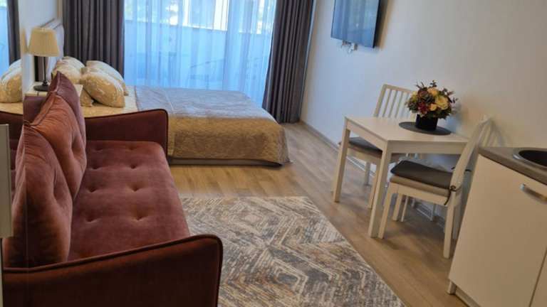 Das Apartment Diana bietet eine komfortable Unterkunft in Palanga, nur wenige Gehminuten von verschiedenen Sehenswürdigkeiten entfernt. Das Apartment verfügt über ein Schlafzimmer, ein Badezimmer, eine voll ausgestattete Küche und einen Balkon mit Poolblick. WLAN ist in allen Bereichen kostenlos verfügbar. Die Unterkunft ist ideal für Reisende, die die Attraktionen von Palanga erkunden möchten.