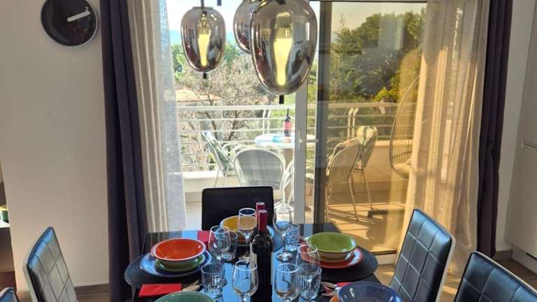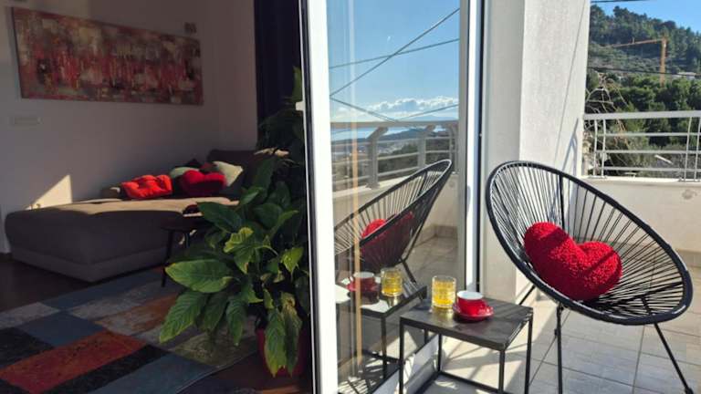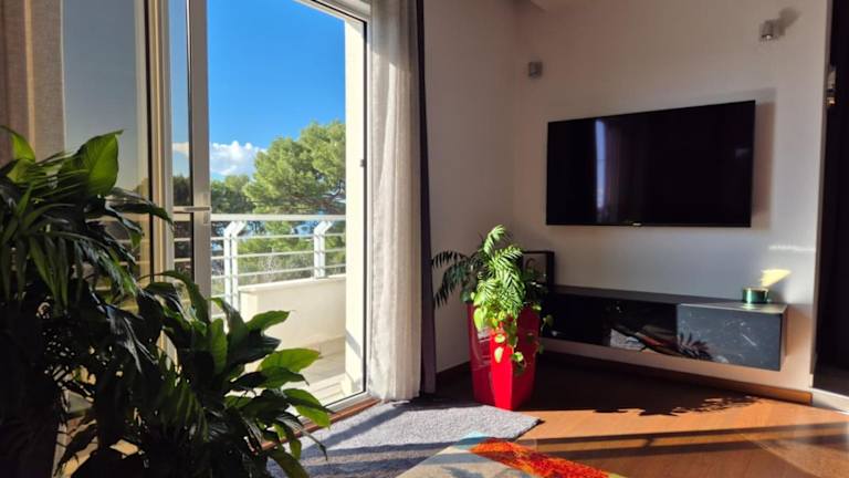 Die Unterkunft Apartment Dora bietet klimatisierte Übernachtungsmöglichkeiten mit Balkon, Meerblick und Bergblick. Die Ferienwohnung ist mit einer Terrasse ausgestattet und bietet Platz für bis zu vier Personen in zwei Schlafzimmern und einem Wohnzimmer.