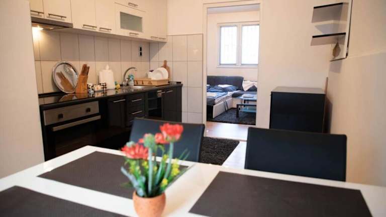 Die Ferienwohnung verfügt über 1 Schlafzimmer, eine Küche mit Kühlschrank und Ofen sowie 1 Badezimmer mit Dusche, Haartrockner und Waschmaschine. Handtücher und Bettwäsche sind vorhanden.