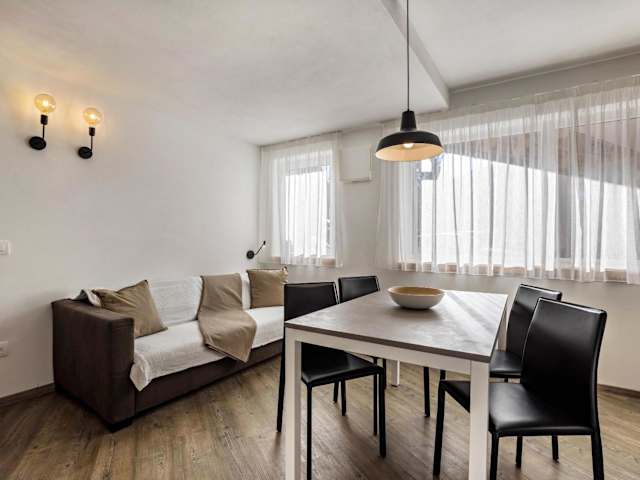 Die Ferienwohnung besteht aus einem Schlafzimmer, einem Wohnzimmer, einer voll ausgestatteten Küche mit Kühlschrank und Kaffeemaschine sowie einem Badezimmer mit Dusche und kostenlosen Pflegeprodukten. Handtücher und Bettwäsche werden zur Verfügung gestellt.