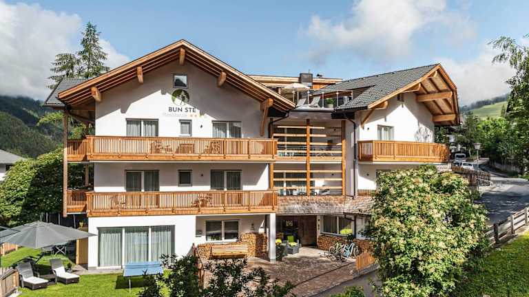 Das Apartment Dui Residence Bun Ste bietet Übernachtungsmöglichkeiten in Form eines Ferienapartments, das mit einem Garten und Grillmöglichkeiten ausgestattet ist. Zudem steht ein kostenloser Parkplatz zur Verfügung. Die Ausstattung beinhaltet kostenfreies WLAN und einen Blick auf die Berge.