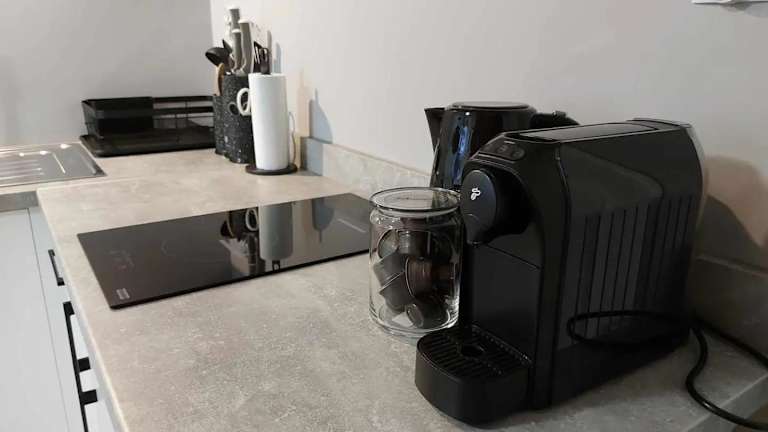 Die Ferienwohnung verfügt über ein Schlafzimmer, eine Küchenzeile mit Kühlschrank und Geschirrspüler, einen Flachbild-TV und einen Sitzbereich. Es gibt ein Badezimmer, das mit einer Dusche ausgestattet ist. Handtücher und Bettwäsche werden zur Verfügung gestellt.