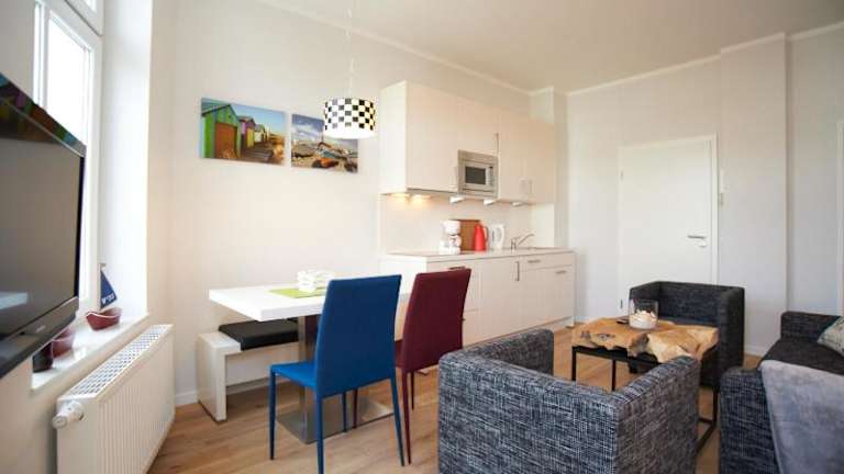 Die Ferienwohnung befindet sich in der Nähe des Weststrands von Norderney, 400 m entfernt, und bietet Zugang zu verschiedenen Freizeitmöglichkeiten wie Wandern, Reiten und Windsurfen. In der Umgebung befinden sich weitere interessante Orte wie die Spielbank Norderney, der Hafen Norderney und das Fischerhaus Museum.