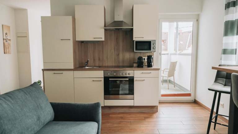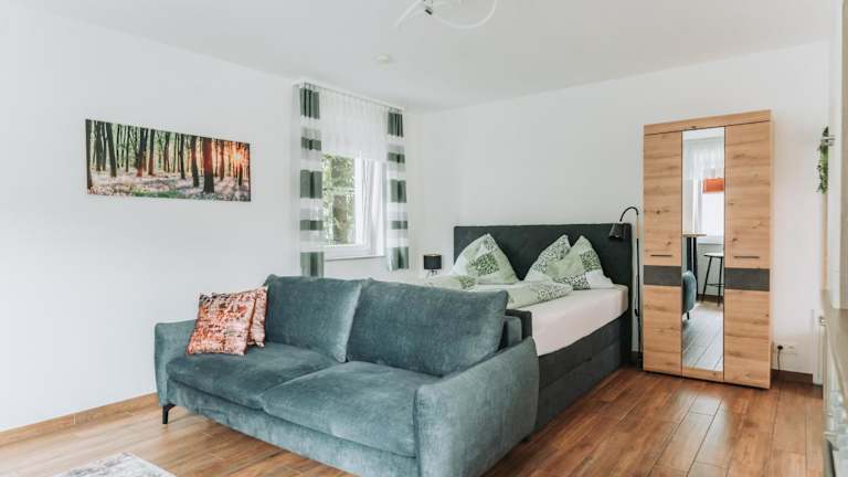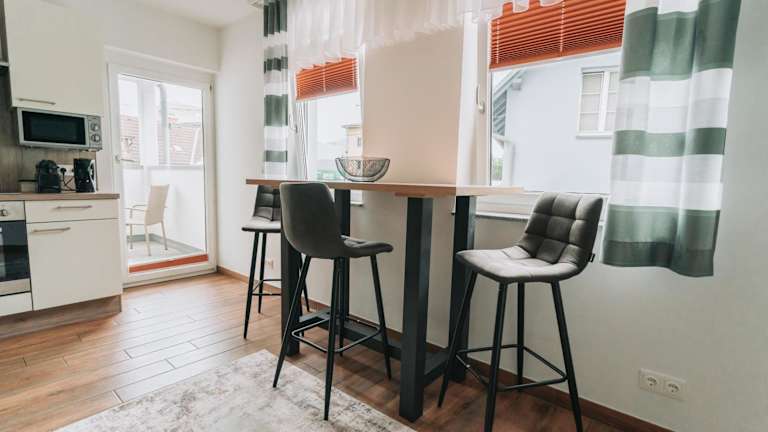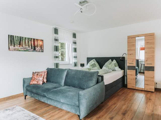 Die Ferienwohnung verfügt über ein Schlafzimmer, ein Badezimmer, eine voll ausgestattete Küchenzeile, einen Essbereich, einen Flachbild-TV sowie die notwendige Bettwäsche und Handtücher.