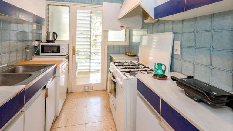 Die Ferienwohnung umfasst 3 Schlafzimmer und eine gut ausgestattete Küche mit Kühlschrank und Geschirrspüler. Zum Badezimmer gehören ein Bidet, ein Haartrockner und eine Waschmaschine. Zudem ist ein Fernseher vorhanden.
