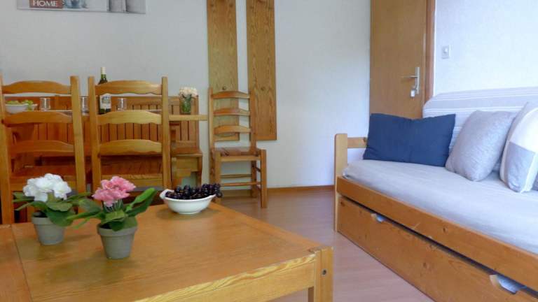 Die Ferienwohnung umfasst zwei Schlafzimmer, ein Wohnzimmer mit Kabel-TV und eine voll ausgestattete Küchenzeile mit Kühlschrank und Ofen. Zudem sind zwei Badezimmer mit Dusche vorhanden. Ein Babybett kann gegen Aufpreis bereitgestellt werden.