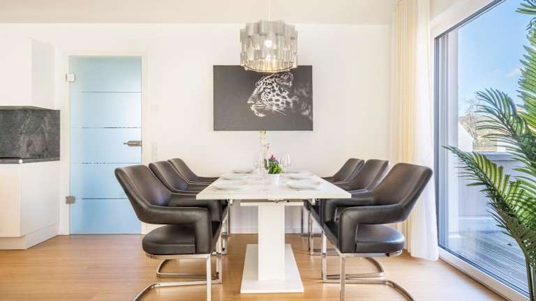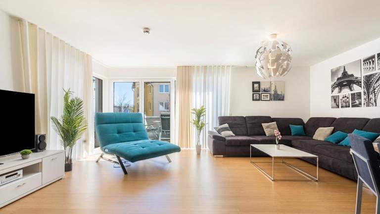 Die Ferienwohnung besteht aus 3 Schlafzimmern, einem Wohnzimmer und einer voll ausgestatteten Küche, die mit einem Kühlschrank und einer Kaffeemaschine ausgestattet ist. Des Weiteren sind 3 Badezimmer mit Dusche und kostenlosen Pflegeprodukten vorhanden. Handtücher und Bettwäsche werden bereitgestellt.