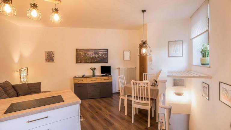 Das Apartment Eva besteht aus einem gemütlichen Schlafzimmer, einem geräumigen Wohnzimmer und einer voll ausgestatteten Küche. Die Küche verfügt über einen Kühlschrank und eine Kaffeemaschine, so dass die Gäste ihre eigenen Mahlzeiten zubereiten können. Das Apartment bietet auch ein Badezimmer mit einer Dusche und kostenlosen Pflegeprodukten. Handtücher und Bettwäsche werden gestellt, um den Gästen den Aufenthalt so angenehm wie möglich zu gestalten.