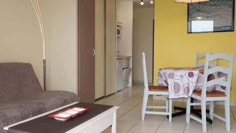 Die Ferienwohnung umfasst ein Schlafzimmer, ein Badezimmer mit Dusche und eine gut ausgestattete Küchenzeile, die unter anderem einen Kühlschrank und einen Geschirrspüler beinhaltet. Ein TV ist ebenfalls vorhanden. Für Kinder steht ein kostenloses Babybett und ein Zustellbett zur Verfügung.