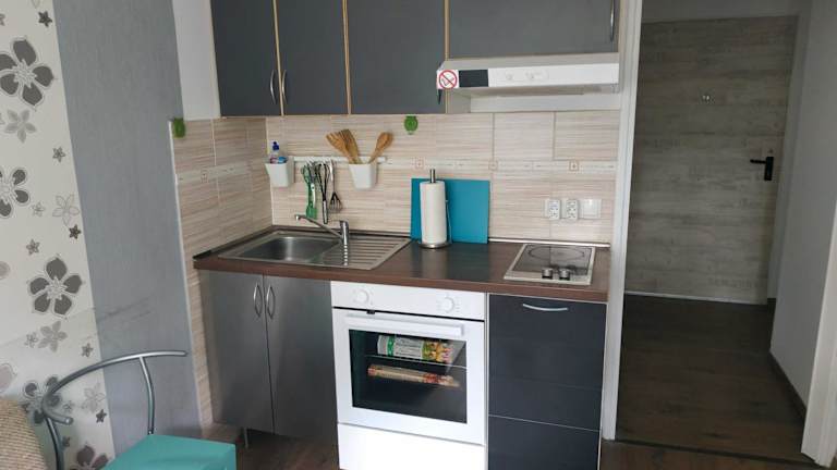 Das Apartment Fancy verfügt über ein modernes Design und bietet zwei Flachbild-TVs mit DVD-Playern für Ihre Unterhaltung. Die voll ausgestattete Küchenzeile ermöglicht es Ihnen, Ihre eigenen Mahlzeiten zuzubereiten, und der Balkon lädt zum Entspannen ein. Im geräumigen Wohnzimmer finden Sie ein bequemes Schlafsofa und einen Essbereich. Handtücher und Bettwäsche werden gestellt, so dass Sie sich um nichts kümmern müssen. Das Apartment befindet sich neben dem ruhigen Innenhof des Gebäudes, so dass Sie eine angenehme und ruhige Atmosphäre genießen können.