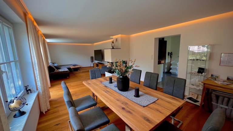 Die Ferienwohnung umfasst 2 Schlafzimmer, ein Wohnzimmer, eine gut ausgestattete Küche sowie 1 Badezimmer mit Dusche und Badewanne. Zur Ausstattung gehören zudem ein Kabel Flachbild-TV und eine Terrasse mit Bergblick. Handtücher und Bettwäsche werden bereitgestellt.