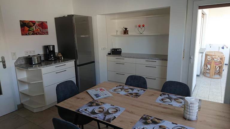 Die Ferienwohnung verfügt über eine voll ausgestattete Küche, in der Mahlzeiten zubereitet werden können. Ein Minimarkt ist ebenfalls vor Ort vorhanden, um die Grundbedürfnisse decken zu können.