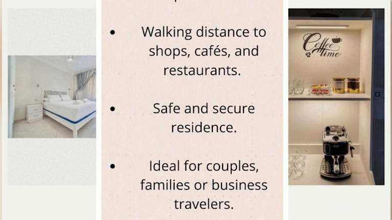 Die Wohnung verfügt über zwei Schlafzimmer, ein Wohnzimmer und eine voll ausgestattete Küche, die mit einem Kühlschrank und einer Kaffeemaschine ausgestattet ist. Es sind zwei Badezimmer vorhanden, die mit einem Bidet und einer Dusche ausgestattet sind. Handtücher und Bettwäsche werden bereitgestellt.