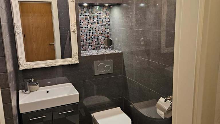Die Ferienwohnung umfasst 1 Schlafzimmer, eine Küche ausgestattet mit Kühlschrank und Ofen, einen Flachbild-TV sowie einen Sitzbereich. Zur Ausstattung gehört ein Badezimmer mit Dusche. Handtücher und Bettwäsche werden zur Verfügung gestellt.