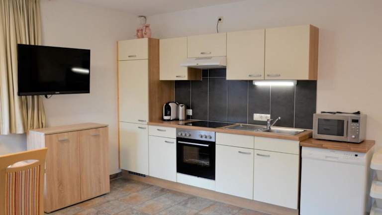 Die Ferienwohnung umfasst 1 Schlafzimmer, ein Wohnzimmer mit TV, eine gut ausgestattete Küche mit Kühlschrank und Geschirrspüler sowie 1 Badezimmer mit Badewanne.