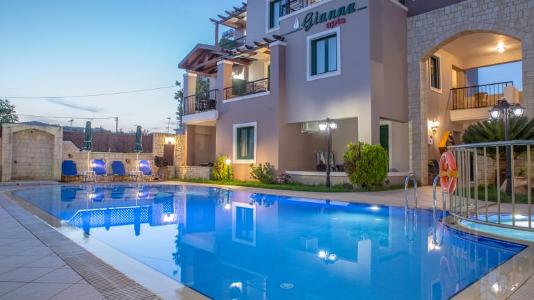 Das Hotel Gianna Apartments bietet einen mit Mosaik gefliesten Pool und ein separates Kinderbecken, die beide eine willkommene Abkühlung an heißen Tagen bieten. In der Umgebung gibt es auch verschiedene Freizeitaktivitäten, wie zum Beispiel Wassersport am Strand oder Ausflüge in die malerischen Dörfer der Region.