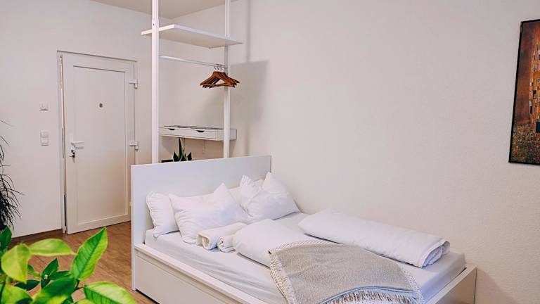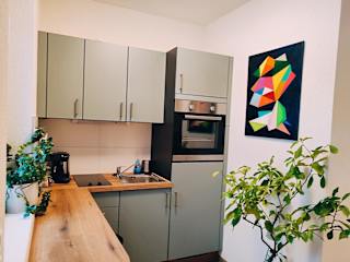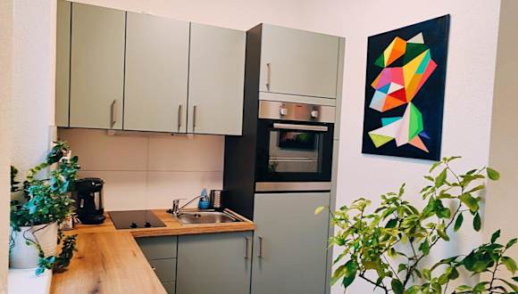 Die Ferienwohnung im Erdgeschoss verfügt über ein Schlafzimmer, einen Flachbild-TV und eine voll ausgestattete Küche, die mit einem Kühlschrank und einem Ofen ausgestattet ist. Handtücher und Bettwäsche werden zur Verfügung gestellt.