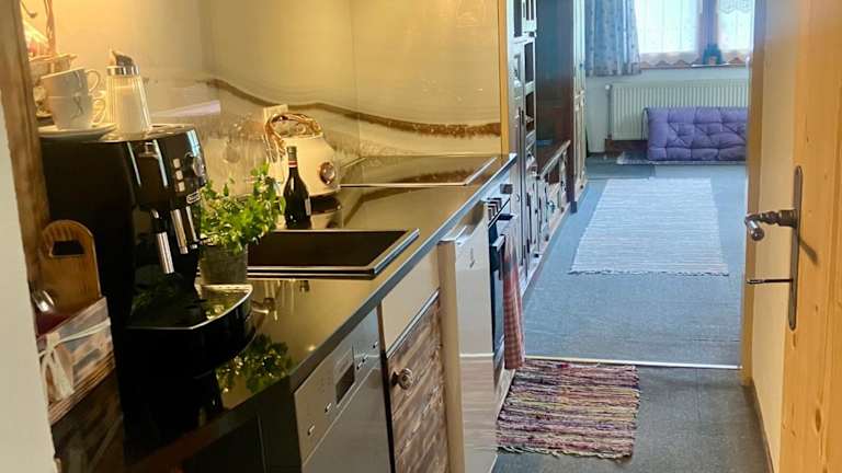Die Ferienwohnung umfasst ein Schlafzimmer, ein Wohnzimmer und ein gut ausgestattete Küche mit Kühlschrank und Geschirrspüler. Zudem gibt es ein Badezimmer mit Dusche. Handtücher und Bettwäsche werden bereitgestellt.