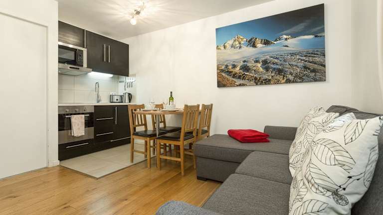 Apartment Grepon 2 - A Chamonix Alpine Haven ist eine Ferienwohnung mit einem Balkon sowie einer Kaffeemaschine. Die Einrichtung verfügt über Gartenblick und kostenfreies WLAN. Die Unterkunft bietet auch eine Waschmaschine und eine Küchenzeile mit Kühlschrank und Mikrowelle. Handtücher und Bettwäsche sind vorhanden.