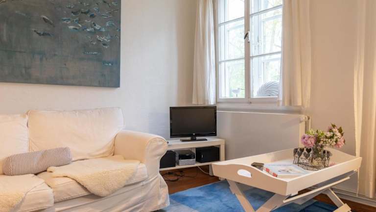 Die Ferienwohnung umfasst ein Schlafzimmer, ein Wohnzimmer mit TV (Satellitenkanäle), eine voll ausgestattete Küche mit Kühlschrank und Ofen sowie ein Badezimmer mit Dusche. Es steht ein Babybett kostenlos zur Verfügung.