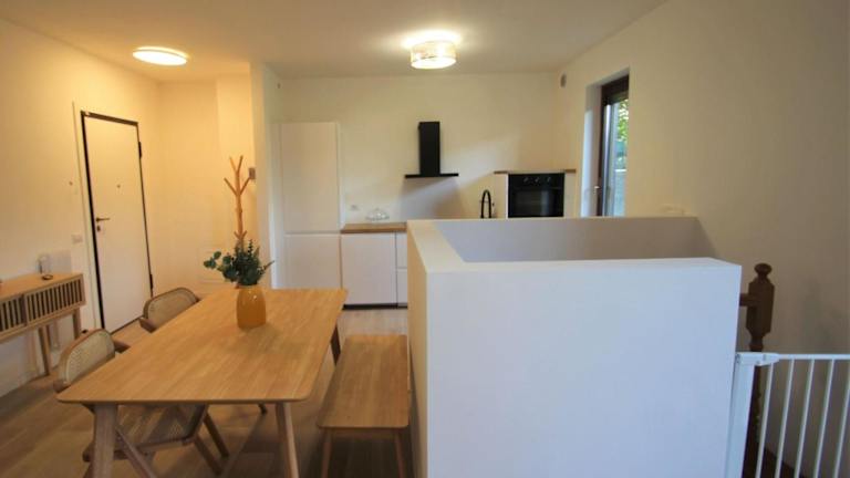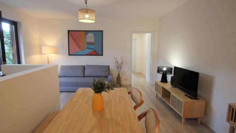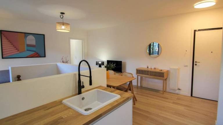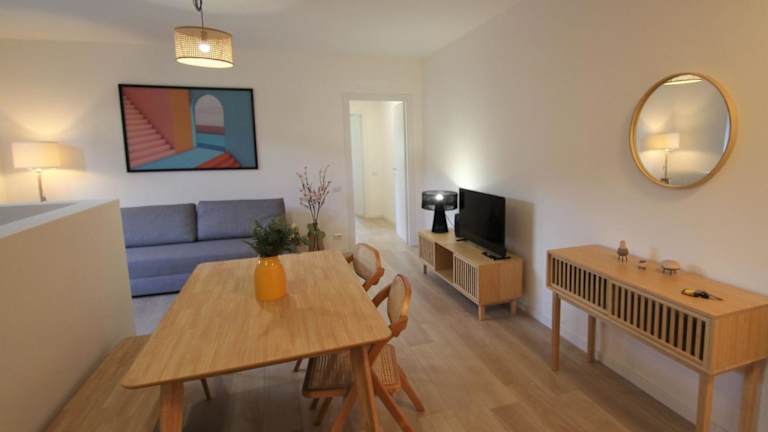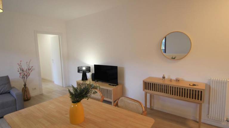 Die Ferienwohnung umfasst ein Schlafzimmer, ein Wohnzimmer sowie eine voll ausgestattete Küchenzeile mit Kühlschrank und Kaffeemaschine. Das Badezimmer ist mit einem Bidet und einer Dusche ausgestattet. Zudem steht ein TV zur Verfügung.