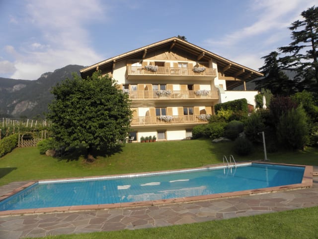 Unser Haus liegt in sehr schöner Lage am Ortsrand von Schenna und Meran, zentral verkehrsberuhigt und mitten im Grünen. Nach Meran und Schenna sind es nur wenige Fußminuten. Gute Busanbindung.